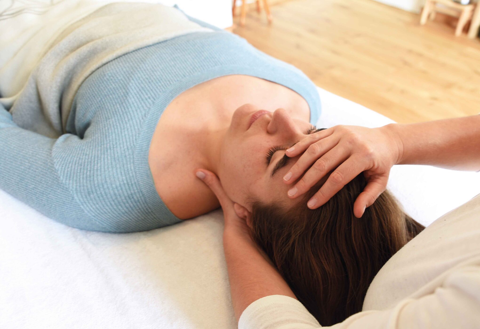 Wie nehmen uns etwa 60 Minuten Zeit für die Craniosacrale Therapie. Hierfür legst du dich in bequemer Kleidung auf die angemehm beheizte Behandlungsliege. Je nach körperlicher Möglichkeit kannst du auf dem Rücken oder der Seite liegen. am Ende kannst du einige Minuten nachruhen. Im Anschluss nehmen wir uns Zeit zum Nachbesprechen und bei Bedarf zum Vereinbaren von Folgeterminen.