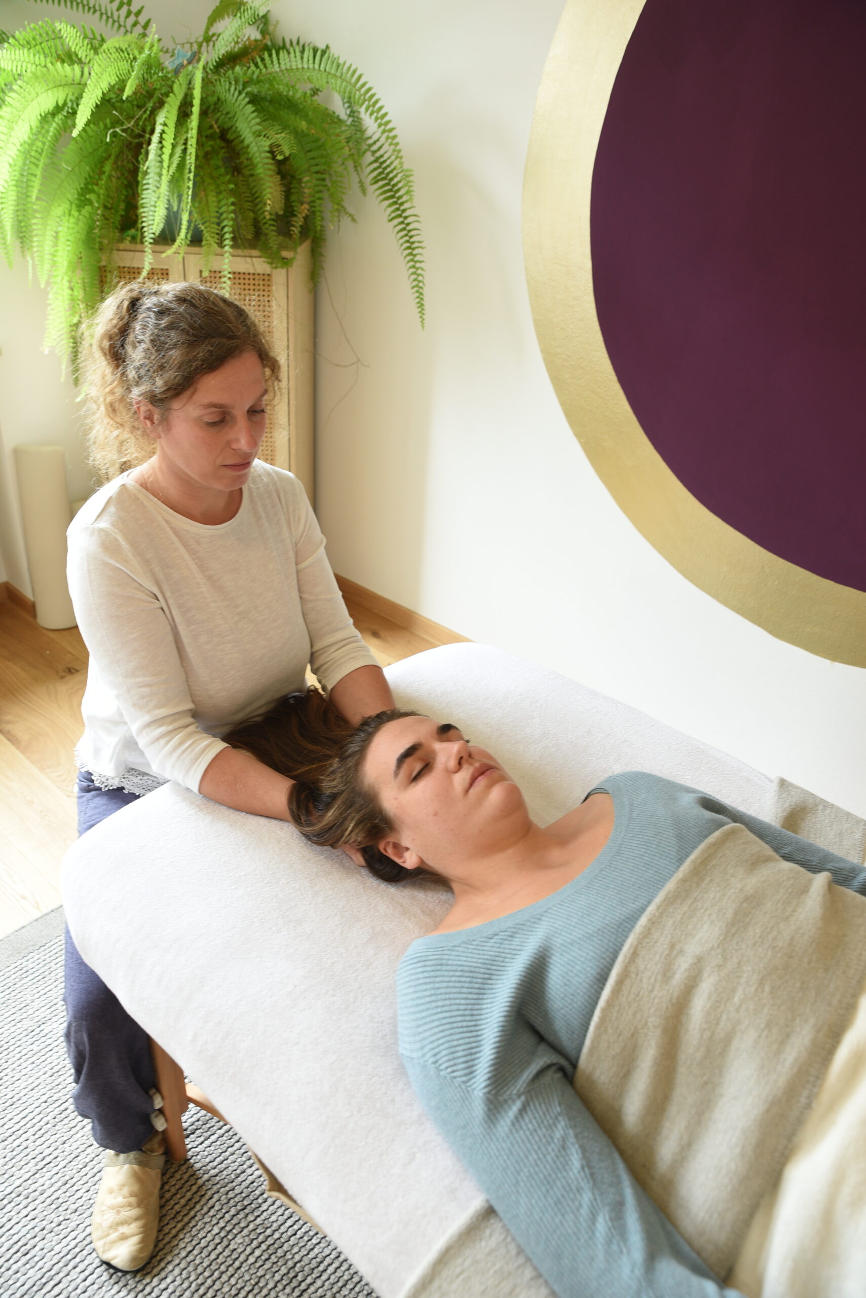 Während der Behandlung liegst du in bequemer Kleidung auf meiner gemütlichen Therapieliege. Meine Hände lege ich sanft auf oder unter den Körper. Oft bleibe ich länger in einer Position, so dass Stille, Ruhe und langsame Körperwahrnehmung Raum bekommen. Oft entstehen durch dieses achtsame Halten kraftvolle Prozesse. Ruhiger, sprachlicher Austausch über deine Körperwahrnehmung und dein aktuelles Befinden sind ein weiteres Werkzeug, um dich sicher zu begleiten.